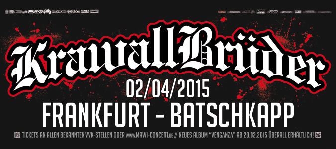 2015 ist es wieder soweit: Die KrawallBrüder gehen den nächsten Schritt und veröffentlichen am 20. Februar ihr neues Album "VENGANZA", um anschließend auf große Hallentour durch Deutschland, Österreich und die Schweiz zu gehen. Neben Publikumshochburgen wie Oberhausen, Erfurt, Leipzig, Berlin, München und vielen anderen, setzen die Brüder erstmalig einen Fuß nach Bremen, um auch das Publikum im Norden zu begeistern.