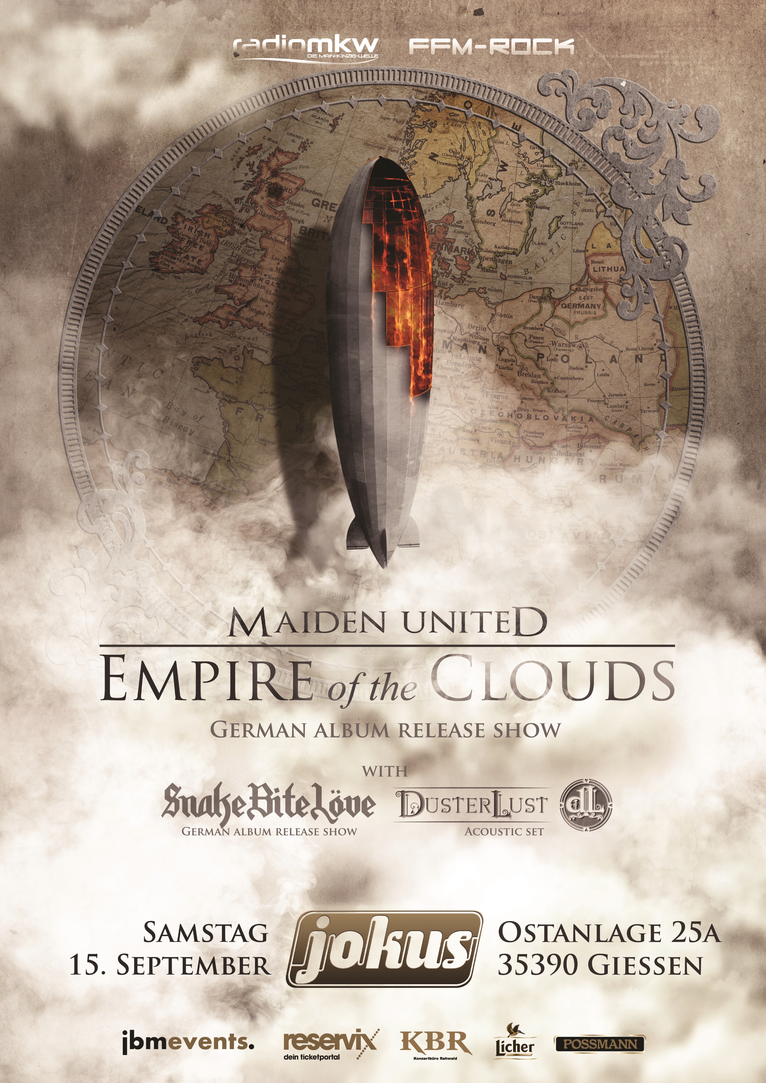 Die Akustik-Tributeband „Maiden United“ spielt im Jokus, Gießen – und Gänsehaut-Gefühle sind vorprogrammiert: Die 2006 gegründete niederländische Iron-Maiden-Akustik-Tributeband Maiden United kommt am Samstag, den 15. September 2018, zum Start ihrer „Empire Of The Clouds“ Europatournee mit einer exklusiven Release Show ins Jokus nach Gießen. Unteranderem wird das IRON MAIDEN Meisterwerk „Empire Of The Clouds“, der letzten Iron Maiden Veröffentlichung Book Of Souls, KOMPLETT gespielt werden.