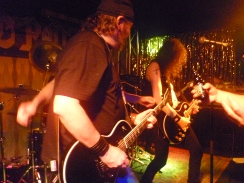 Spätestens mit dem sehnlichst erwarteten Headliner wird es richtig voll in der Goldgrube. Geschätzte 120 Besucher sind anwesend, die Maximalkapazität der Goldgrube liegt bei ca. 180, was für die Kleinlocation eigentlich an sich völlig ausreicht. Für mich zählen JAG PANZER zu den fünf besten US-(Power)Metalbands aller Zeiten, diese Band verkörpert wie keine andere den Inbegriff des US Power Metals, (- welche die anderen vier sind, dürfen jene, die mich kennen, gern selbst erraten!). Ihre Sonderstellung unterstreicht die vom Start weg auf extrem hohem Niveau zur Sache gehende Legende vor einem sofort vom ersten Riff gnadenlos durchdrehenden Publikum in Kassel. Die sich sogar über so manchen Aufnäher anderer Bands auf Fankutten freuenden Bandmitglieder (darauf ein kräftig Prost, Mr. Tafolla!) werden nach Strich und Faden abfeiert. Musiker sind eben auch Fans, was diese sympathische US-Truppe in aller Form (wie es sich für waschechte Metalbands gehört), geballt heavy auf der Bühne zeigend auslebt.