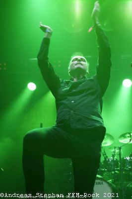 Den Anfang machen die Frankfurter Thrasher von TANKARD. Das Publikum scheint nach der langen Pause noch etwas eingerostet aber das stört die Jungs überhaupt nicht und so macht vor allem Frontmann Gerre ordentlich Meter und lässt es sich auch nicht nehmen, den geneigten Fans sein imposantes Biergewölbe darzubieten. Nicht unbedingt meine Mucke aber Spaß machen die Herren eigentlich immer.