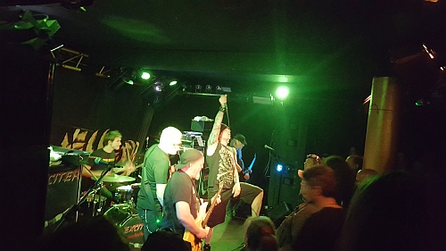Die als dritte Vorband zwischen ARTILLERY und BLOODSTAR in einigen Orten dazukommenden Schweden SCREAMER sind in Kassel nicht dabei, was mir das richtet sich nicht gegen SCREAMER, - schätze diese schwedische Classic Heavy Metalband sehr) wirklich gelegen kommt, weil es nächsten Tags arbeiten geht, eine Band mehr würde das ganze Billing zeitlich gesehen zu weit nach hinten rücken.