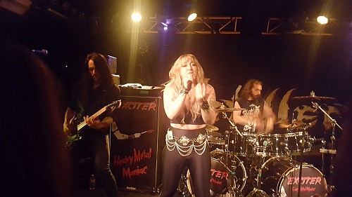 EXCITER entfesseln das Total-Speed-Inferno. Wenn es eine Band auf Erden gibt, die als Erfinder oder Pioniere des klassisch reinen Speedmetals gelten, dann sind es EXCITER! Dieser Gig des kanadischen Speed-Metal-Trios ist nicht nur irgendein x-beliebiger von vielen, sondern präsentiert als Tourmotto alle Klassiker vom legendären Debüt! Dementsprechend feiert die Die-Hard Oldschool-Speed und Thrashfraktion das Gesamte 'Heavy Metal-Maniac'-Album des Ahornblatt-Trios angefangen vom Intro „The Holocaust“ über Speedgeschosse „Stand Up and Fight“, „Heavy Metal Maniac (-die ultimative Metal-Hymne überhaupt immer wieder geil!) „Cry Of The Banshee“ oder „Iron Dogs“; auch der halbballadesken am Ende zum Speedfeger mutierenden Hybrid „Black Witch“löst pure Metalmania unter den anwesenden Metalfans aus. Dass neun Tracks vom EXCITER-Debüt nicht ausreichen, um den Abriss komplett zu machen, dürfte klar sein. Auch die vier Kracher vom 'Violence and Force'-Zweitwerk „Evil Sinner“; „War Is Hell“; „Beyond The Gates Of Doom“ und „Violence and Force“ hinterlassen immens Eindruck, dem stehen „Born To Die“ und am Ende noch der ordentlich Restkraftreserven mobilisierende Hymnenfeger „Long Live The Loud“ nicht im geringsten nach. EXCITER haben das Heft voll in der Hand, Da ist viel Bewegung drin, das Publikum tobt sich zusammen mit der Band in einen Rausch!