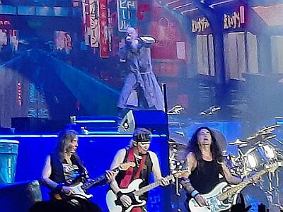 Nach dem UFO-Evergreen „Doktor, Doktor“ vom Band als Eröffnungskick geht es Punkt 21:00 Uhr mit „Caught Somewhere In Time“ zum Auftakt mächtig in die Vollen. - Licht & Sound sind Top! IRON MAIDEN-T-Shirt Preise (45 Euro für ein Shirt!) liegen erwartungsgemäß extrem hoch, - soviel sollten Fans mittlerweile wenn sie ein offizielles Shirt von der aktuell anlaufenden 'The Future Past'-Tour kaufen, durchaus registriert haben und sich nicht erst hinterher über diesen Punkt beschweren. Wer's kennt weiß Bescheid, wer nicht ist somit im Bilde. Die Getränkepreise (4,50 für den 0,5 l Becher) sind günstiger als auf der 'Legacy of the Beast '-Tour 2022. Kaltgetränke am Stand geholt und ab, - rein in die Halle!