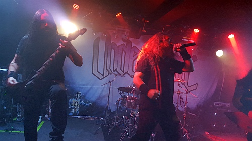 Raukantig röhrende Explorergitarrenriffs kommen schneidend knarrzig aus den Verstärkern... im weiteren Verlauf drehen UNDERCROFT richtig auf, der Zug kommt mit jedem Stück besser ins Rollen, brutal schnelle Grind-Deathkaskaden donnernde Death Metalknüppelparts und schleppende Midtempogrooves werden harmonisch miteinander verbunden, indessen die Gitarrenfraktion auf der linken Seite in Person von Claudio Illanes/Sergio Aravena schrittweise ihren Rhythmus findend, durch cooles Bühen-Posing glänzt. Zunächst in Schweden beheimatet, haben UNDERCROFT ihren Aufenthaltsort in Hamburg. Die seit 1991 aktive Band ist das älteste aller drei auftretenden Höllenlärmkommenandos. Warum UNDERCROFT als letzte Band ran dürfen, zeigen sie zunehmend im Verlauf ihrer sich keine Blöße gebenden Darbietung. Die Band wird lautstark für eine Zugabe auf die Bühne zurückgerufen und bringt sie verdientermaßen. „To The Final Battle“ sorgt für den gewaltig durch's Ambiente dröhnenden Rausschmiss.