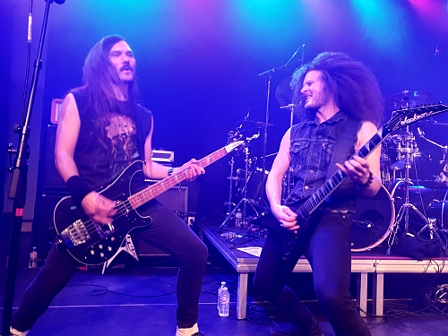 aus dem Ruhrpott legen ein derart energiegeladenes Thrashbrett auf die Bühne, dass den Saal zum Toben bringt! Zur Einleitung ertönt das Stimmung weckend kultige Star Wars Intro zu 'Episode V The Empire Strikes Back“ aus den Verstärkern. KREATOR/DEATH ANGEL/EXODUS-Oldschool-Thrash mit Eigen-Ideengebung ist für die nächsten 45 Minuten angesagt. Der zwischen Europa und den USA pendelnden Stil trifft vollends den Nerv des heftig abgehenden Publikums. 20 Jahre ERADICATOR sind wie das schöne Tourshirt zeigt, schon ein gewichtiges Wort!
