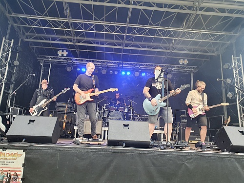 haben die Aufgabe den HOCHLANDROCK-Samstag pünktlich gegen 19:00 Uhr zu eröffnen. Großes Vorbild für die Kasseler Band sind wie der Name erraten lässt, die FOO FIGHTERS (gegründet vom ehemaligen NIRVANA-Schlagzeuger Dave Grohl), deren Sound sich die Band mit Hingabe und Leidenschaft verschrieben hat. Das kommt bei dem Gig jederzeit zum Ausdruck. Alternative-Metalkracher vom Format „The Pretender“, „My Hero“ und „Everlong“ sorgen gleich für einen coolen Auftakt. auf dem Platz wird bereits getanzt. Das jedoch ein Textblatt am Mikrophonständer befestigt ist, verwundert etwas. Sei's drum. DEE FOOS sind exakt das richtige, um die Füße amtlich Bewegen locker Abhotten oder Tanzbein schwingend über die Wiese zu schweben. DEE FOOS bringen ihr Programm effektiv ins Volk. Nach diesem erfreulichen Auftakt kann alles weitere kommen...