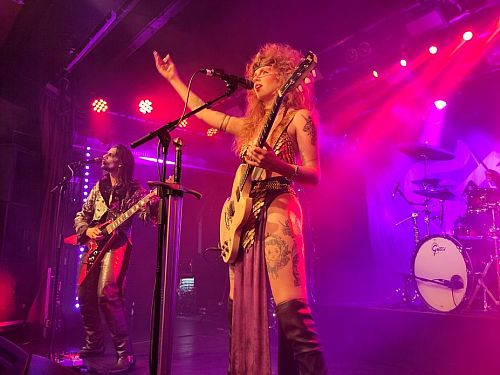 Ein bombastischem Intro ertönt, anschließend kommt ein weißer Zauberer auf die Bühne. Er verweist auf das auf einem beleuchtetem Podest platzierte Buch namens „TheBestiary“ (auch derName des zweiten CASTLE RAT Albums), welches die Rat Reaperess – ein verkleidetesUngeheuer mit Rattenkopf – stehlen möchte. Nun kommen die Protagonisten auf die Bühne und dasIntro geht nahtlos ins Instrumetal „Phoenix I “ über. Es folgen „Dragon“, das treibende „Wizard“ und das mystische „Feed The Dream“. Castle Rat erinnern an fleisch gewordene Figuren aus einemFrazetta Comic und wissen sich zu inszenieren. Bandleaderin,Sängerin und Ryhthmus-Gitarristin Riley „The Rat Queen“ Pinkerton trägt einen langen Lendenschurz und Metallbikini. Leadgitarrist „the Count“ ist ein Vampir, der Bassist „The Plague Doctor“ trägt eine Pestmaske. Der Schlagzeuger ist ein Druide.