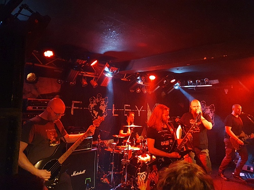 Das Eingangsdoppel „Dread“/“Lust For Life“ verteilt als Opener vom Start weg in die Vollen gehend Rundschläge nach allen Seiten, der doomig startende in ein Thrashdonnerwetter umschlagende „The 7th Journey“ Nackenwirbelzerstörer fehlt ebensowenig, „Tears Of Blood“ und „Part Of Hell“ (vom 1994er 'Disparody Of Views'-Demo) krachen wuchtig ins Gebälk, exzessiv beschwingt Groovethrashige Auflockerung bringt „The Chosen One“ als „Song zu dem ihr Tanzen könnt“. Licht & Sound im Ambiente stimmen. Drummer Mike gibt der Becken/Fellelandschaft heftig saures, die Gitarrenfront Frank/Stefan/Andreas metzelt sich kompromislos durch den Oldschool-Set einschließlich Frank's rauem Gesang, Abstimmung funktioniert – inklusive Posing – bestens.