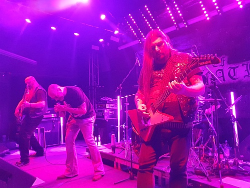 Der Festivalausklang soviel wird klar, gehört eindeutig dem zahlenmässig am allermeisten von allen Bands unterstützten Headliner. ANGEL OF DAMNATION sind kein unbeschriebenes Blatt. Bereits im Juni 2025 veröffentlichte der von SACRED STEEL/DAWN OF WINTER-Frontmann Gerrit Philipp Mutz angeführte Doomvierer Longplayalbum Numero drei, 'Etherial Blasphemy', das heftig in der Slo-Mo-Szene einschlug. Entsprechend hoch sind Bekanntheitsgrad sowie damit verbundene Erwartungen an den Vierer, der sich zum Ausklang keine Blöße gibt. Gitarrist Daniel 'Avenger' Cichos steht u. a. in Reihen der Black Metal Thrash-Institution NOCTURNAL deshalb kommt mir der "neue" im Team gleich so bekannt vor, während, Bassist Forcas auch bei der Doom-Riege CROSS VAULT und den Black Metallern HALPHAS den Tieftöner schwingt, SENTRY/TRANCE/Ex-MANNILLA ROAD-Schlagwerker Neudi ist ebenfalls hinreichend zur Genüge innerhalb der Metal-Szene bekannt, das gilt auch für den Doom-Sektor.