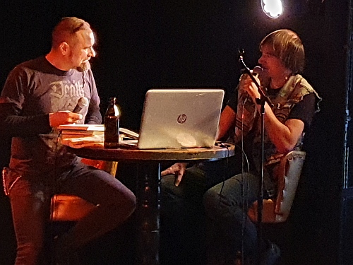 Einen unterhaltsamen Abend garantierte die Autorenlesung von Holger Schmenk mit Daniel Hofmann. Der Autor stellt in der Goldgrube Kassel einzelne Kapitel mit Anspielung einiger Songs der jeweils zugehörigen Alben aus dem Buch Kumpels in Kutten III - Heavy Metal im Ruhrgebiet vor. Ein Kapitel des vorzustellenden Buches bildet die erfolgreiche Filmdoku Total Thrash - The Teutonic Story, deren zweiter Teil im Februar 2026 Premiere feiert. Als Interviewpartner zu diesem speziell gesonderten Thema steht ihm Filmdirektor Daniel Hoffmann als Gast zur Verfügung. Holger Schmenk und Daniel Hofmann liefern sich ein per Mikro geführtes Live-Interview, wobei der Autor Fragen an den Macher des Films stellt, währenddessen das Publikum andächtig zuhört. Schmenks Autorenkollege Andreas Schiffmann (u. a. Rock Hard) ist nicht anwesend. Pünktlich um 20:00 Uhr geht’s los.