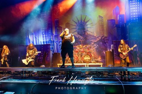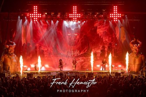 Mille, Sami, Ventor und Frederiq geben eine überragende Headlinershow, die alles zuvor gewesene übertrifft. Dieser Abend steht ganz im Zeichen von KREATOR! Mille dirigiert souverän ganz nach Belieben die ihm aus der Hand fressende Fanmasse. Lockere Ansagen gehören dazu, doch die reduziert er heute komplett auf's Mindeste, um alle Stücke im Zeitplan unterzubringen - ein Unterfangen, das letzten Endes gelingt. „Krushers of The World“ schwört die Fans ein, ehe es an der Zeit ist, mit purem Thrash die "Hordes of Chaos" zu vereinen. Mille will den Moshpit, doch dieser bleibt in Frankfurt aus. Dennoch geben KREATOR alles, wodurch die Show auch ohne Moshpit zum Knaller wird. Mille Petrozza, Sami Yli-Sirniö und Fréderic Leclercq haben reichlich Druck auf den Klampfen. Jürgen Ventor Reil treibt seine Vordercrew schweißtreibend hart arbeitende kraft und taktvoll aus oberster Position in der Ehrenloge über dem Bühnenareal sitzend, zu voller Leistungsstärke an. Wie wirklich real der Teufel im gesellschaftlichen Sinne ist, verdeutlicht „Satan Is Real“, Mille stapft im Teufelskostüm über die Bretter, genießt das Bad der ihm zujubelten Menschenmenge. „Loyal To The Grave“ gefolgt vom ergreifend mystischen Zwischenspiel „Mars Mantra“ schließt sich in „Phantom Antichrist“ der nächste kapitale Heavy/Thrash-Kracher an.